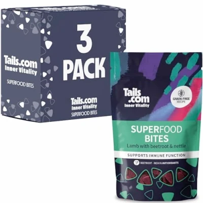 Tails.com Inner Vitality Dog Treats 3 x 80g Superfood Bites 27% Lamb Grain Free Recipe No Artificial Colours or Flavours Low Calorie Snacks Rich in Antioxidants from Beetroot