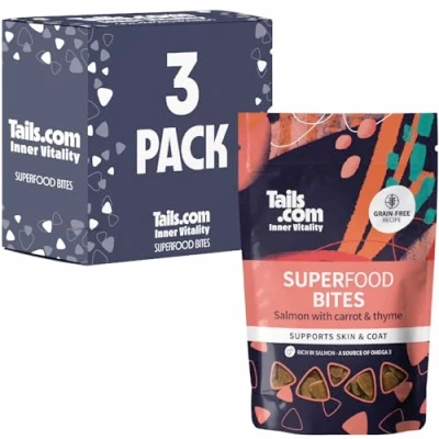 Tails.com Inner Vitality Dog Treats 3 x 80g Superfood Bites 27% Salmon Grain Free Recipe No Artificial Colours or Flavours Low Calorie Snacks Rich in Salmon, a Source of Omega