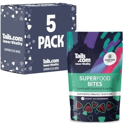 Tails.com Inner Vitality Dog Treats 5 x 80g Superfood Bites 27% Lamb Grain Free Recipe No Artificial Colours or Flavours Low Calorie Snacks Rich in Antioxidants from Beetroot