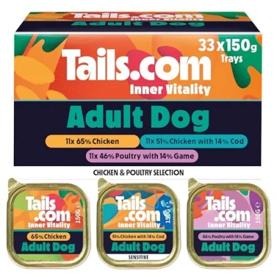 Tails.com Inner Vitality Wet Dog Food 33 x 150g Poultry Selection Multipack Chicken, Chicken & Cod and Game Adult 1 7 years Grain Free Recipes Made with natural ingredients