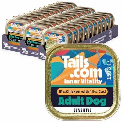 Tails.com Inner Vitality Wet Dog Food 33 x 150g Sensitive Chicken & Cod Adult 1 7 years Grain Free Recipe Made with natural ingredients Contains Omega 3 to Support Skin and Coat