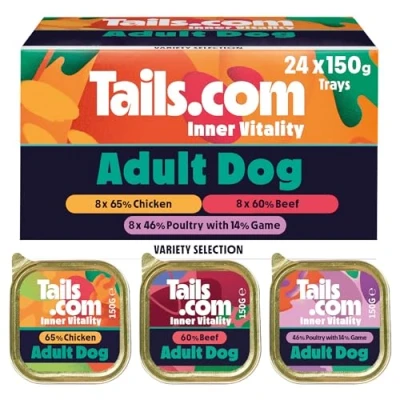Tails.com Inner Vitality Wet Dog Food 4 x 6x150g Variety Multipack 65% Chicken, 60% Beef and Poultry & Game Adult 1 7 years Grain Free Recipes Made with natural ingredients