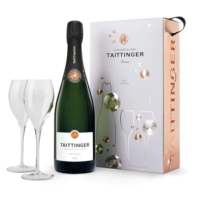Taittinger Brut Réserve Non Vintage Champagne and Glasses Gift Set 75cl