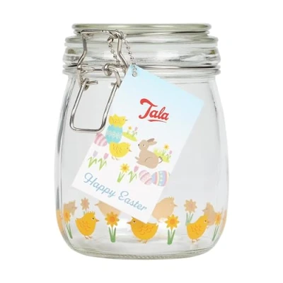 Tala Glass Airtight storage Jar with Baby Chick Pattern, Measures 750ml Air Tight Stainless Steel Clasp and Silicone Seal, Ideal for food