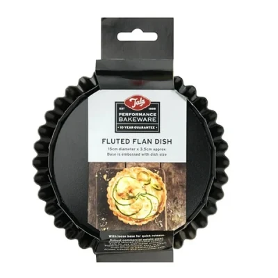 This Tala Performance 15cm tart tin is made from heavy duty carbon steel and features rolled edges to provide extra strength in the oven and whilst in use.The 15cm tart tin has a durable non-stick coating for perfect results every time which is not only PFOA and BPA free but the glossy finish gives it a premium feel and appearance.The tried and tested Tala Performance bakeware boasts even heat distribution and is suitable for oven temperatures up to 240°C. Suitable for storage in the fridge and freezer and dishwasher safe for easy and convenient cleaning.Dimensions: 3.5(H) x 15(W) x 15(D)cm.