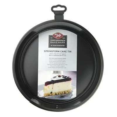 This Tala Performance 23cm springform cake tin is made from heavy duty carbon steel and features rolled edges to provide extra strength in the oven and whilst in use.The 23cm springform cake tin has a durable non-stick coating for perfect results every time which is not only PFOA and BPA free but the glossy finish gives it a premium feel and appearance.The tried and tested Tala Performance bakeware boasts even heat distribution and is suitable for oven temperatures up to 240°C. Suitable for storage in the fridge and freezer and dishwasher safe for easy and convenient cleaning.Dimensions: 7(H) x 23(W) x 23(D)cm.