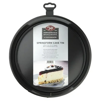 This Tala Performance 25cm springform cake tin is made from heavy duty carbon steel and features rolled edges to provide extra strength in the oven and whilst in use.The 25cm springform cake tin has a durable non-stick coating for perfect results every time which is not only PFOA and BPA free but the glossy finish gives it a premium feel and appearance.The tried and tested Tala Performance bakeware boasts even heat distribution and is suitable for oven temperatures up to 240°C. Suitable for storage in the fridge and freezer and dishwasher safe for easy and convenient cleaning.Dimensions: 7(H) x 25(W) x 25(D)cm.