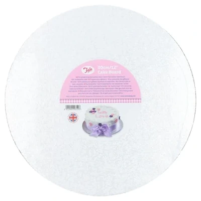 CAKE BOARD: The most traditional way of display a freshly baked cake 3MM THICKNESS: These Cakes Boards are made to 3mm thickness which is perfect for use with Victoria Sponges and other light cakes and pastries DIAMETER: This cake Board has a diameter of 12 inches / 30cm EMBOSSED SILVER FOIL: These Cakes Boards have a embossed silver foil finish which gives a great background for any freshly baked Cake TALA: Known and trusted for Baking and Icing products since 1899
