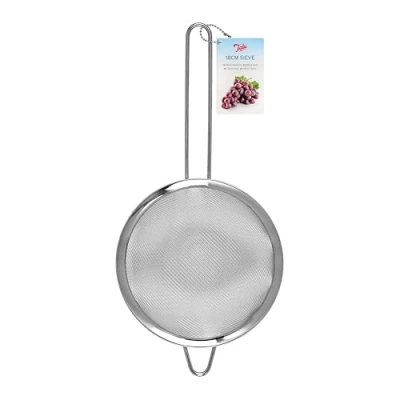 SIZE: This Tala Sieve measures 18cm in Diameter and perfect in and around the kitchen and perfect for washing and straining Vegetables, Fruits,Berries, Rice and Pulses items FINE MESH: This Essential Kitchen Item is made with a fine mesh which makes these versatile in any Kitchen and will Strain, Sieve and Wash a wide selection of foods STAINESS STEEL: Made using Food Grade Stainless Steel these are robust and durable and will look great at the table DISHWASHER SAFE: This Essential Mutli-use Kitchen Tool is dishwasher safe and BPA Free TALA: The Tala collection of Kitchen gadgets and utensils includes a diverse which is perfect for everyday cooking and baking, established in 1899, Tala has become a trusted source of high-quality Kitchenware, Bakeware and Cookware