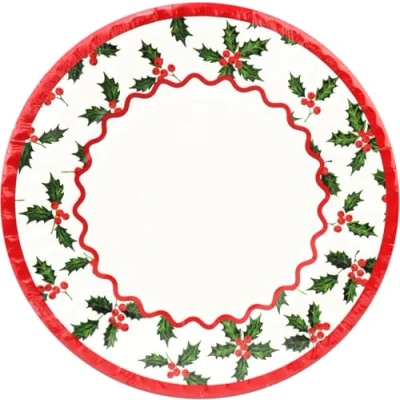 Talking Tables 10 x Disposable Paper Plates Elegant Pretty Holly Design Recyclable Tableware Dishes for Christmas, Birthday Party, Weddings, Anniversary 27cm ABOUT THE PRODUCT: Serve up festive cheer with our Botanical Holly large paper plates. Featuring a classic holly design with a scalloped edge, this pack of 10 recyclable, FSC-certified plates is perfect for Christmas parties and seasonal gatherings. Each plate measures 27cm ideal for mains, buffets, and festive feasting. ECO: ALL Talking Tables products are made to be either reusable or home recyclable and this include both product and packaging! QUALITY: Our products are made to the highest quality standard and are sold in many premium high street shops in the UK and internationally. BRITISH BRAND: Talking Tables has become the go-to brand for innovative, sustainable, and design-led products that add fun and style to every occasion., Weight: 0.25794053 Pounds, Manufacturer: Talking Tables
