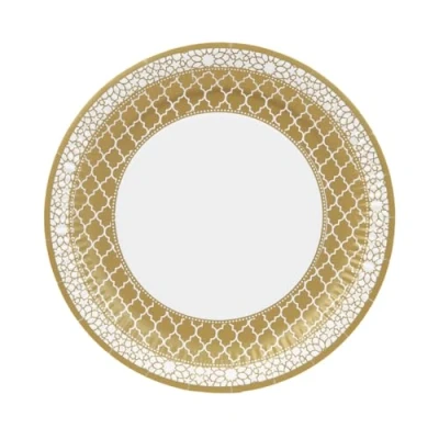 Talking Tables 10 x Gold Strong Paper Plates Recyclable Disposable Dishes Table Party Decorations for EID Celebration Picnics, Anniversary, Weddings, 23cm, White
