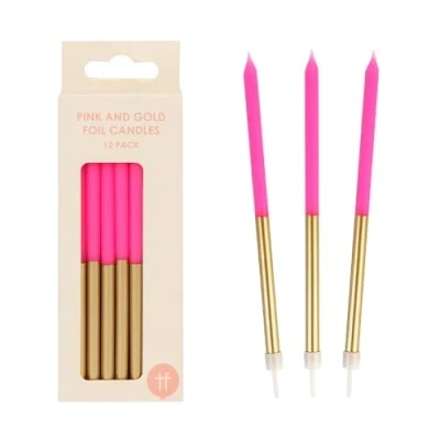 Talking Tables 12 x Pink and Gold Birthday Candles with Holders 12cm Long & Tall Cake Decorations for Birthday, Wedding, Anniversary