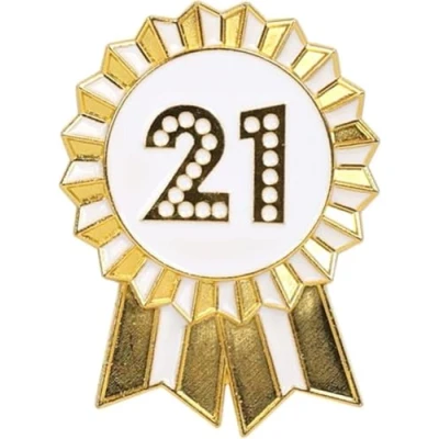 Talking Tables 21st Happy Birthday Badge, Gold and White Enamel Metal Rosette, Reusable, Accessories for Girls, Adults, Children, Party Supplies, Milestone, Anniversary, 4.5 cm Diameter