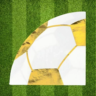 Talking Tables 29cm x Pack of 16 Football Party Paper Napkins for Kids or Adults Birthdays Soccer Celebrations Foil, White Gold