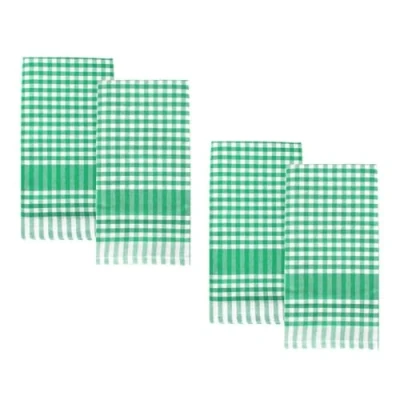 Talking Tables 4 x Green Gingham Kitchen Tea Towels Table Linen Fabric Dish Cloths Large Checkered Cloth Napkins Absorbent Durable Soft Cotton Quick Drying, ECO Packaging 45 45cm