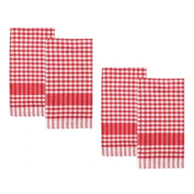 Talking Tables 4 x Red Gingham Kitchen Tea Towels Table Linen Fabric Dish Cloths Large Checkered Cloth Napkins Absorbent Durable Soft Cotton Quick Drying, ECO Packaging 45 45cm