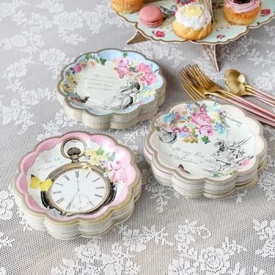 Talking Tables 60 x Alice in Wonderland Themed Disposable Paper Plates Supplies for Mad Hatter Tea Party, Birthday, Baby Shower, Mother's Day, 17cm ABOUT THE PRODUCT: Each pack includes 60 premium paper plates in 3 enchanting Alice in Wonderland designs, each measuring approx. 6.7" (17cm) in diameter. Perfect for a Mad Hatter’s Tea Party, Alice in Wonderland themed celebration, baby shower, or Mother’s Day afternoon tea, these disposable party plates add a touch of whimsical charm while making clean-up quick and easy, ideal for serving cakes, sandwiches, and sweet treats. ECO: ALL Talking Tables products are made to be either reusable or home recyclable and this include both product and packaging! QUALITY: Our products are made to the highest quality standard and are sold in many premium high street shops in the UK and internationally. BRITISH BRAND: Talking Tables has become the go-to brand for innovative, sustainable, and design-led products that add fun and style to every occasion., Manufacturer: Talking Tables