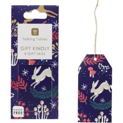 Talking Tables 8x Twilight Blue Gift Tag with String for Christmas Present, 10cm x 5cm Secret Santa, Birthday, Gift, Tie on Labels with String, Labels PACK of 8 SIZE: Height: 10cm, Width: 5cm ABOUT THE PRODUCT: Our new gift tags are a perfect addition to our most popular Christmas collections, including the trendy woodland-themed Twilight series. Inspired by the enchanting imagery of dancing hares, a wise owl, and playful foxes in a mystical forest, these tags feature a blue background reminiscent of a twilight sky. Standing 10cm tall and available in packs of eight, these tags are the perfect finishing touch for your gifts and are part of our new sustainable Gift Kindly collection. BRITISH BRAND: Talking Tables Head Office is based in London; we are a small friendly team working hard to make your gatherings extra special., Manufacturer: Talking Tables