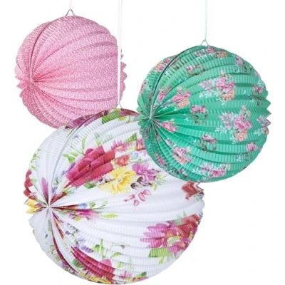 Talking Tables 3 x Pastel Floral Paper Lanterns Set – Truly Scrumptious Decorations for Afternoon Tea, Baby Shower, Wedding, Birthday, Bridal Shower – 30.5cm, 25.4cm, 20.3cm. ABOUT ME: A set of 3 hanging paper lanterns, each with a classic pastel floral design. Easy to assemble, includes coordinating ribbon. Sizes: large, medium and small for versatile styling. OCCASIONS: Ideal for Mother's Day, kids' birthday parties, garden teas, baby showers, weddings or as a thoughtful gift. Bring a vintage dainty touch to your next celebration. QUALITY: Our products are made to the highest quality standard and are sold in many premium high street shops in the UK and internationally. 🇬🇧 BRITISH BRAND: Talking Tables has become the go-to brand for innovative, sustainable, and design-led premium products that add fun and style to every occasion., Manufacturer: Talking Tables