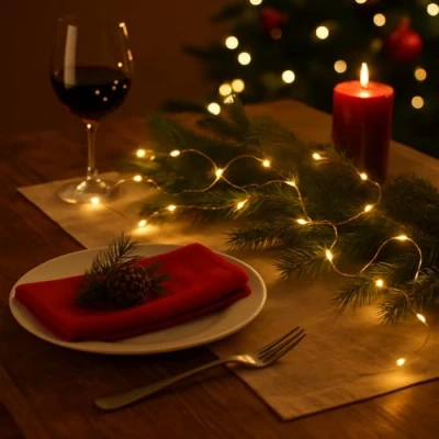 Talking Tables Battery Operated Led String Lights for Indoor use with Gold Wire Christmas Table Decorations, Wedding, Valentine's Day, Engagement Party, Xmas 60 Bulbs 3m