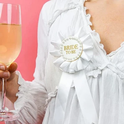 Talking Tables 'Bride to Be' Badge for Hen Party Accessories, Engagement, Bridal Shower Elegant White Pearl Rosette Women