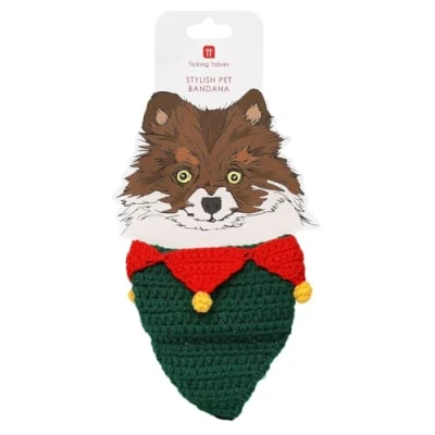 Talking Tables Christmas Dog Bandanas, Kerchiefs for Pets - Triangle Scarves for Dogs, Cats and Puppies Costume, Washable Accessories with Santa Designs Clothing & Accessories for Dogs PACK of 1 SIZE: Width: 12.5cm, Height: 13.5cm ABOUT THE PRODUCT: Spread the Christmas cheer to all members of the family with our charming Christmas-themed dog and cat bandanas. These hand-crocheted festive bandanas are designed to comfortably fit small to medium-sized dogs and cats of all sizes. The item simply ties around the animal’s neck and can be adjusted easily to ensure a good fit. BRITISH BRAND: Talking Tables has become the go-to brand for innovative, sustainable, and design-led products that add fun and style to every occasion