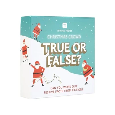 Talking Tables Christmas Festive True or False Quiz Game, Present, Question Cards after Dinner Party, Fun Travel Pocket Games for Kids, Adults, Card Games, Xmas Stocking Filler, Secret Santa, Ages 12+