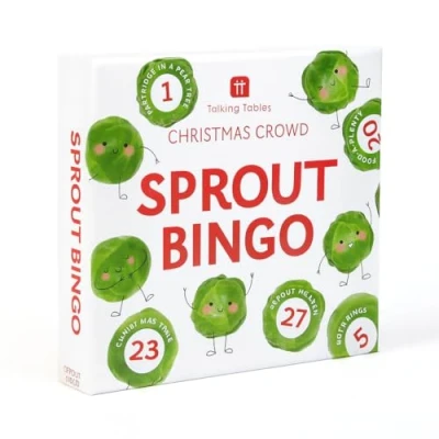 Talking Tables Christmas Sprout Bingo Game Fun Xmas Version of Traditional Festive Family Board Game Tabletop Games For Kids Adults Present Idea Seasonal Stocking Filler Ages 5+ ABOUT THE PRODUCT: Bring laughter to the table with the Sprout Bingo Game – a cheeky festive twist on a classic. Easy to learn and fun for all ages, it's perfect for after-dinner games, stocking fillers, or light-hearted family fun. AGES: 5+ CONTENTS: 100 Bingo Sheets, 48 Calling Cards, 4 Wooden Pencils BRITISH BRAND: Talking Tables Head Office is based in London; we are a small friendly team working hard to make your gatherings extra special., Manufacturer: Talking Tables