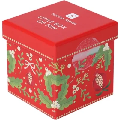 Talking Tables Christmas Trivia Quiz Game Question Cards after Dinner Party Kids Fun Travel Pocket Games Card Games for Adults Family Gift Secret Santa Present Ages 8+ ABOUT THE PRODUCT: Add a touch of festive fun to your holiday gatherings with the Folklore Red Christmas Trivia game. This compact, pocket-sized box contains 60 seasonal trivia questions designed to entertain guests of all ages. Its rich red packaging complements the Folklore range, making it an ideal addition to your Christmas table, a thoughtful stocking filler, or a charming gift for trivia enthusiasts. AGES: 8+ CONTENTS: 60 cards BRITISH BRAND: Talking Tables Head Office is based in London; we are a small friendly team working hard to make your gatherings extra special., Manufacturer: Talking Tables