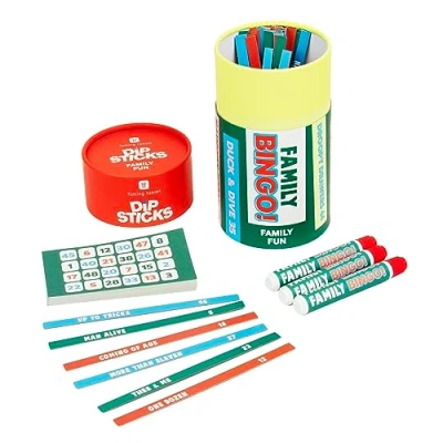 Talking Tables Family Bingo Game BUMPER size Dipstick pack! Includes 6 x Dobber Pens, 100 Sheets, 48 Call Out Sticks Christmas Fun to Entertain Kids and Adults Xmas Gift for Him or Her