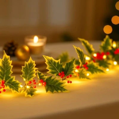 Talking Tables Holly Shaped LED String Lights for Indoor Use, Battery Operated, Christmas Table Decorations, Wedding, Valentine's Day, Engagement Party, Anniversary Dinner 2.6m