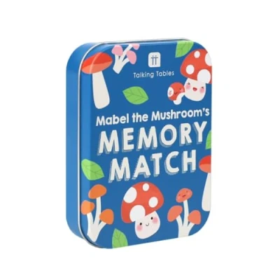 Talking Tables Kids Travel Games, Family Fun, Tin Memory Card Game, Pocket Size, Adults, Gifts, Birthday, Christmas, Stocking Filler, Car Journeys, Plastic-Free Players 2+, Ages 5+ Kids will love this mushroom-themed memory game! The pocket-sized tin includes 36 cards with 18 colorful designs. Match the most pairs to win! Players 2+, Ages 5+ CONTENTS: 36 Cards with 18 Designs ECO: ALL Talking Tables products are made to be either reusable or home recyclable and this include both product and packaging!, Manufacturer: Talking Tables