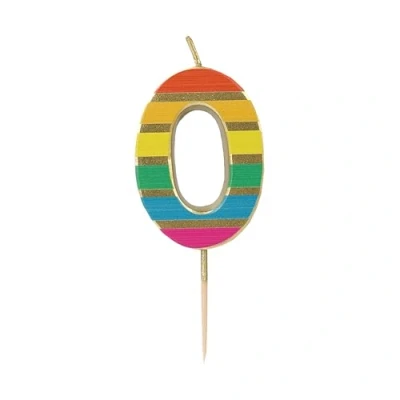 Talking Tables Number Zero 0 Rainbow Birthday Candle for Cakes, Cake Topper Decoration, Premium Quality Numeral Candles, Anniversary, Milestone Age, 5.5 cm Height, Recycled Packaging Bring a vibrant touch to your celebrated ones' birthday cakes with our new rainbow 0 number candle. Designed to add color and excitement to any celebration, it's perfect for making milestone moments even more special. The multicolored numbers and striped design make it ideal for birthday cakes of all ages and genders. Pack of 1 - Height 5,5 cm ECO: ALL Talking Tables products are made to be either reusable or home recyclable and this include both product and packaging! QUALITY- Our products are made to the highest quality standard and are sold in many premium high street shops in the UK and internationally