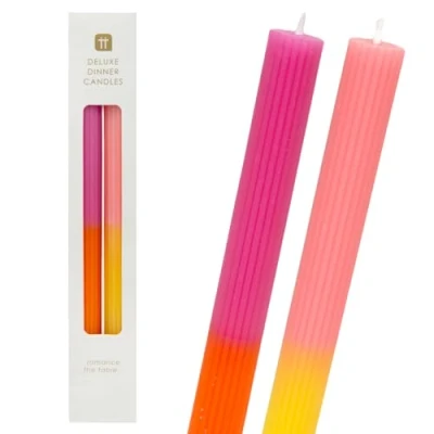 Talking Tables Ombre Tapered Dinner Candles Unscented Neon Pink and Yellow 2 Pack, Sunset