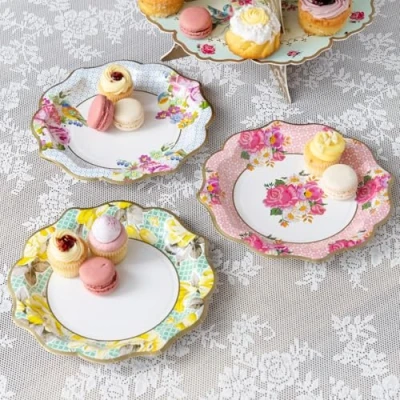 Talking Tables Pack of 24 Afternoon Tea Vintage Floral Paper Plates Truly Scrumptious for Birthday Party, Baby Shower, Wedding and Anniversary, Disposable Tableware in Pastel Colours