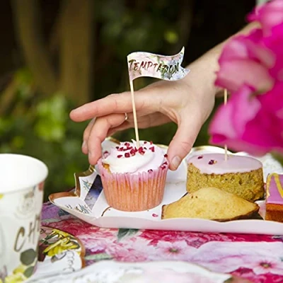 TALKING TABLES Floral Food Picks and Canape Flags – standout buffet and appetiser labels with six bright botanical designs; ideal for afternoon tea, cheese boards, cakes or party snacks ABOUT ME: Pretty floral picks each measure 9 cm tall with 5 cm x 3 cm flags; double-sided with a blank reverse for easy hand-written food labels or fun guest messages; strong paper and easy to use for every celebration OCCASION: Perfect for Mad Hatter tea party decorations, Alice in Wonderland events, kids birthdays, wedding buffets, baby and bridal showers, Bridgerton themed picnics or a stylish Mother's Day afternoon tea; brings floral flair and handy organisation to every table CONTENTS: Includes twenty-four paper party picks in six unique floral designs; each canape flag is 5 cm x 3 cm fitted to a robust 9 cm stick; the pack size is suited for both cosy brunches and large gatherings, ensuring you have enough for every event BRITISH BRAND: Talking Tables has become the go-to brand for innovative, sustainable, and design-led premium products that add fun and style to every occasion