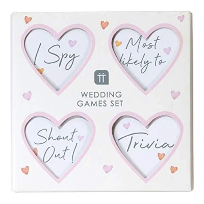 Talking Tables Set of 4 Wedding Table Games for Guests Ice Breaker Trivia, Most Likely To, Shout Out & I Spy, White
