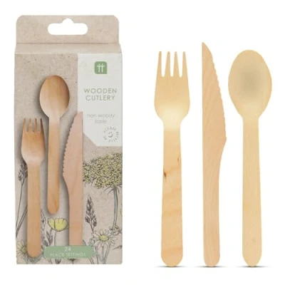 Talking Tables Wooden Cutlery Set Biodegradable Knives, Forks & Spoons Perfect for Camping, Picnics or BBQs 24 Sets
