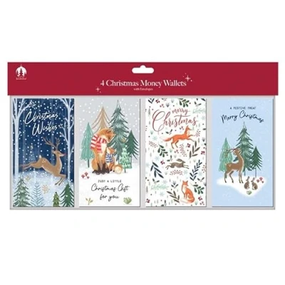 Tallon (X9060A) Christmas Xmas Money Cash Gift Wallets & Envelopes, Woodland Designs Pack of 4