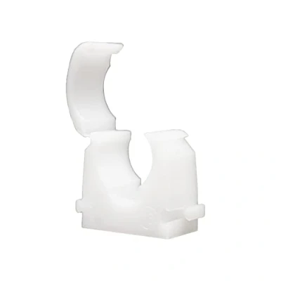 ManoManoGeneral description The Talon Single Hinged Clip provides a reliable 360° fixing for pipework. Made from high-quality polypropylene and manufactured in the UK, this clip ensures a secure attachment for various piping needs. The design allows for easy connection between different sizes of the Hinged Clip through a dovetail mechanism, facilitating equal spacing for pipes. Technical specifications Material: Polypropylene Size: 15mm