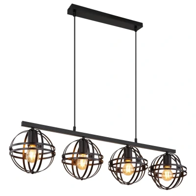 This pendant lamp of the TAMARA series is made of metal with a matt black look and is suspended with a PVC cable in black. The height of the pendant lamp can be shortened according to your needs. The shades of the lamp are delivered disassembled. The dimensions of the pendant lamp are LxWxH: 950x200x1200mm. The required bulbs are not included in the scope of delivery and must be purchased separately. A total of four E27 lamps with a maximum output of 60 watts at 230 volts are required. Product features: Pendant lamp metal black matt, metal black matt, cable pvc black, height adjustable, lxwxh: 950x200x1200mm, excl. 4x e27 60w 230v