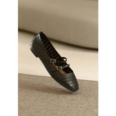 Tamaris Ankle strap ballet pumps, Women's, Size: 4, Black shoes