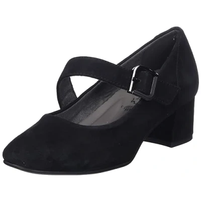 Tamaris Comfort Women's 8 84304 41 Komfortable Mehrweite Bequemschuh Verstellbarer Riemen Klassisch Alltagsschuhe Closed Toe Pumps, Black Suede, 4 UK