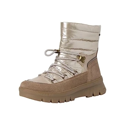 Tamaris Comfort Women's 8 86423 41 Leder Fit Wechselfußbett DUOtex Warm gefüttert Glänzendes Obermaterial Ankle Boot, Taupe Comb, 4 UK