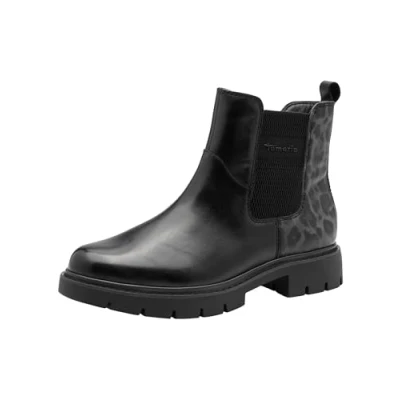 REMOVABLE SOCK: The removable insole flexibly adapts to your feet’s needs and allows replacement with orthopedic insoles. HIGH-QUALITY MATERIAL: The Chelsea boots are made from a blend of leather and synthetic materials, providing both comfort and durability. WIDE FIT: The standard wide fit provides your feet with extra room to move comfortably, ensuring a pleasant wearing experience. COMFORT: Whether strolling through the city, at the office, or meeting friends, the Chelsea boots impress with timeless style and high comfort. Thanks to their elegant design and comfortable fit, they are versatile to combine. TAMARIS COMFORT: The combination of style and comfort is paramount in the Tamaris Comfort line. Individual wearing comfort is emphasized through wide fit and other innovative technologies.