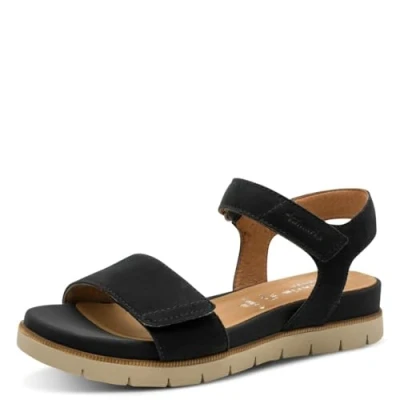 Tamaris Comfort Women’s Flat Leather Sandals with Velcro, Navy Nubuk, 3,5 UK