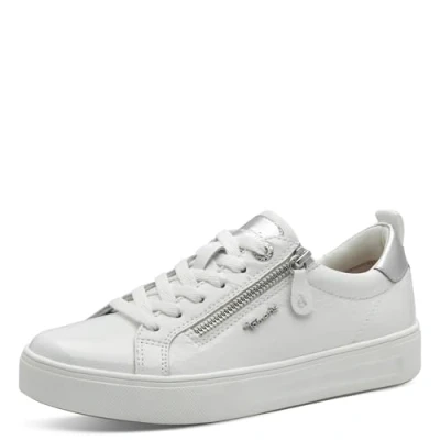 Tamaris Comfort Women’s Flat Sneakers with Zip Casual, White Patent, 5 UK