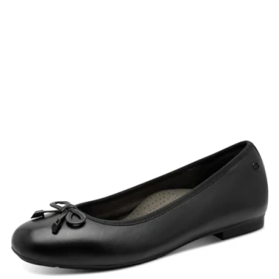 Tamaris Comfort Women’s Leather Ballerinas with Bow, Black, 8 UK