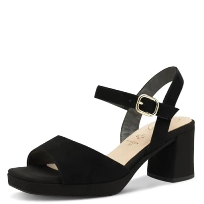 Tamaris Comfort Women’s Sandals with Heel Leather Adjustable Strap, Black Suede, 5 UK