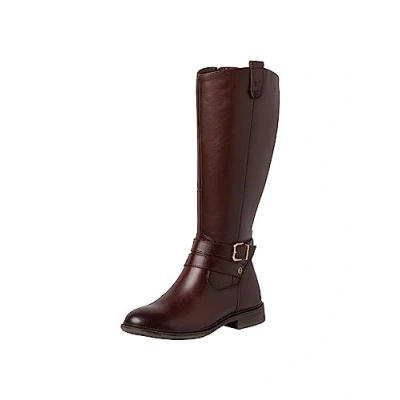 Tamaris Comfort Women’s Tall Boots Flat Leather Elegant Fit , Cognac, 3,5 UK